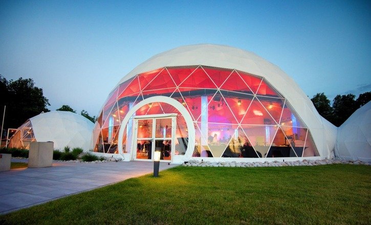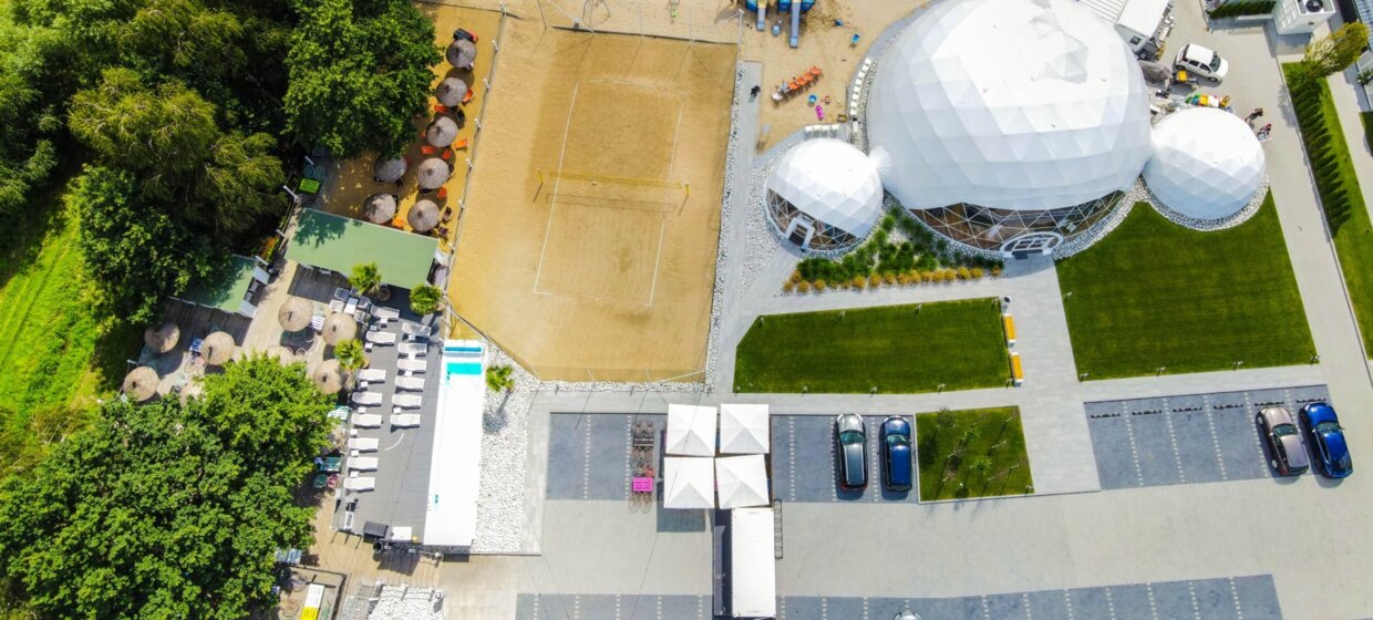 Obiektem od razu przykuwającym uwagę Gości Scandinavia Resort jest kopuła sferyczna, która rozciąga się nad przestronną salą eventową o powierzchni 300 m2. Zaprojektowana przez najlepszych architektów, jest odzwierciedleniem proporcji naszej planety. Unikatowa konstrukcja zapewnia wysoki poziom przepływu energii, co ma przełożenie na pozytywne samopoczucie osób znajdujących się w środku. Gwarantuje również wyjątkowy charakter każdego organizowanego tu wydarzenia.