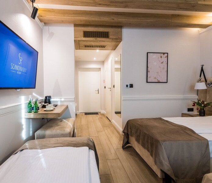 Scandinavia Resort je nádherný hotel navržený tak, aby našim Hostům zajistil jedinečný odpočinek na místě, které je kvintesencí designu v nejlepším, skandinávském stylu. Moderní, funkční interiéry, propracované do nejmenších detailů, atrakce, které umožňují aktivní odpočinek a dobrou zábavu, stejně jako pravdivý odpočinek a vytříbená kuchyně - to jsou hlavní ingredience úspěchu Scandinavia Resort. Kromě toho vynikající poloha našeho resortu umožňuje přístup k mnoha atrakcím, jako je například největší zábavní park v Polsku – Energylandia, Dinozatorland, nebo nacházející se nedaleko Park Miniatur. A je toho zde k prozkoumání mnohem více …