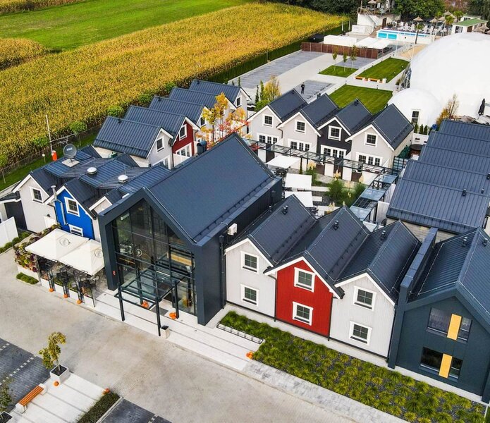 Naše skandinávské domky jsou nabídkou, kterou nikde jinde nenajdete. Vytvořili jsme okouzlující komplex 14 domků navržených ve skandinávském, art deco nebo industriálním stylu umístěných kolem pečlivě navržené terasy. Je to ideální nabídka pro Hosty, kteří hledají nevšední místo k přenocování, které je vyladěno v každém detailu a poskytuje domácí atmosféru a klimat jako z pohádky.