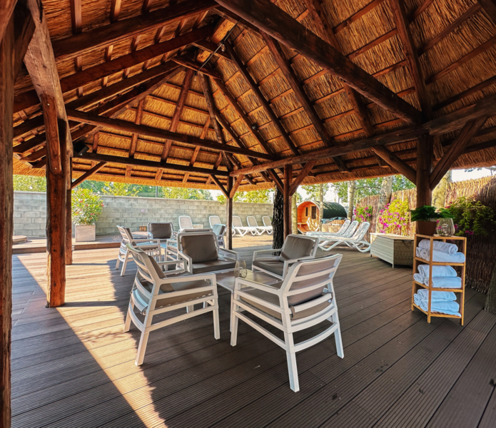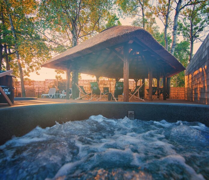 Vodní rituály mají relaxační účinek, zlepšují stav organismu a duševní pohodu. K dispozici Hostů je šestimístná suchá sauna (s maximální teplotou 110°C) a hned vedle ní dřevěná káď se studenou vodou. SPA zóna má rovněž dvě pohodlné vyhřívané vířivky. Toto místo je ideální, pokud chcete relaxovat nejen tělem, ale i myslí – zejména po dni plném zážitků, jako je pobyt v zábavním parku Energylandia, který se nachází v blízkosti našeho resortu.