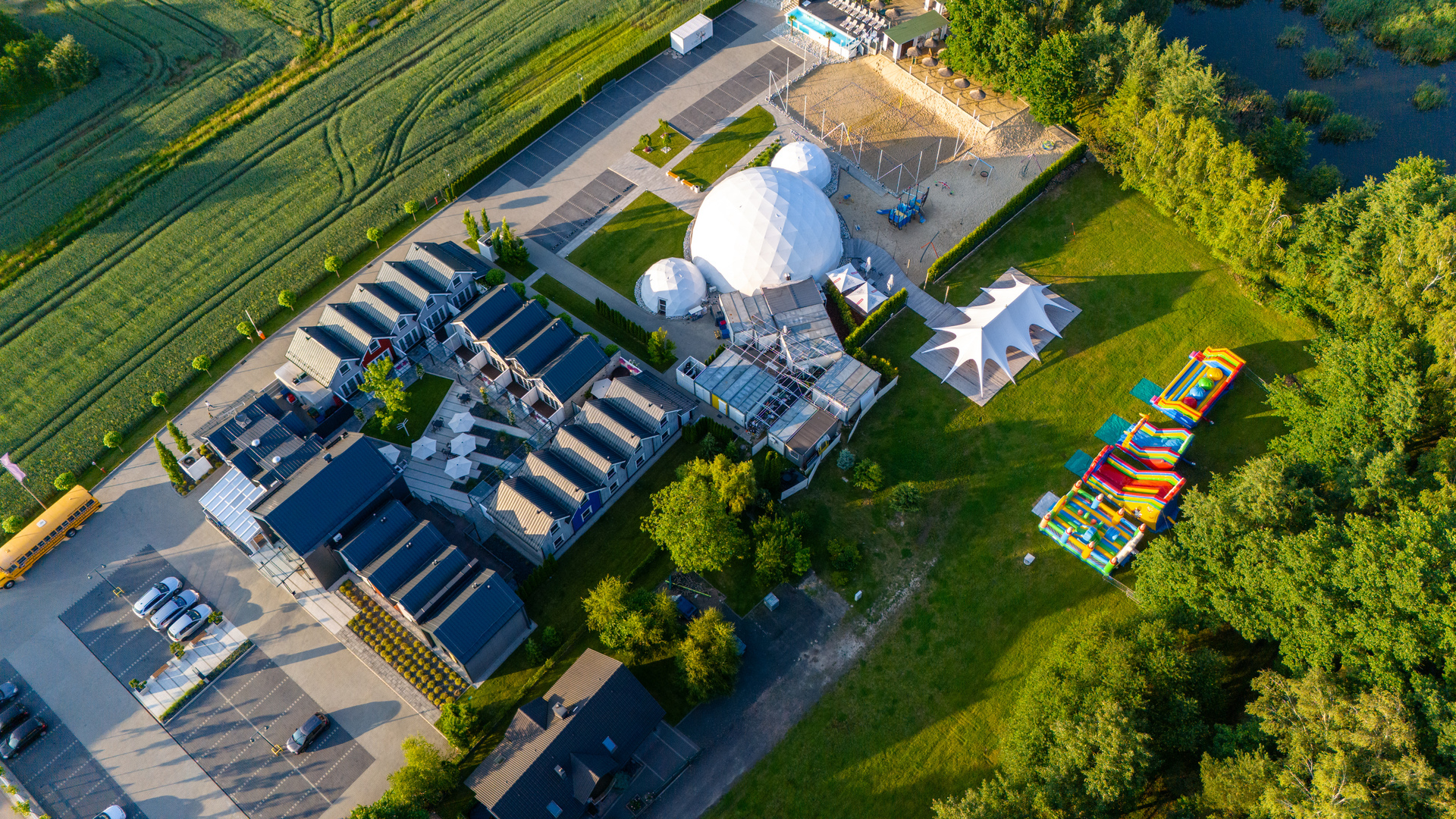 Fostering a true sense of belonging, our cherished retreat offers enveloping comfort with over 500 thoughtfully curated accommodations. The space provides a harmonious blend of comfort and creativity, featuring a welcoming restaurant, a volleyball court, a restorative pool, and a relaxing beach with a cozy bar. Showcasing our passion for distinct details, you will also discover truly unique attractions, including a vintage 1950s American gas station, a classic yellow American bus, and a captivating 300-square-meter dome. When it comes to helping you unwind, feel at ease, and bring your grandest visions to life, we are limited only by imagination.