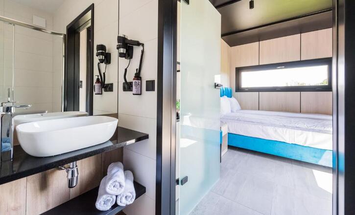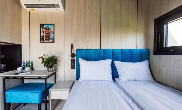 This 11-square-meter, climate-controlled apartment is thoughtfully curated in a striking style, offering a harmonious blend of comfort and creativity. Enveloped in comfort, guests can easily unwind in a restorative bedroom featuring a large double bed, a wardrobe, a 43-inch smart TV.