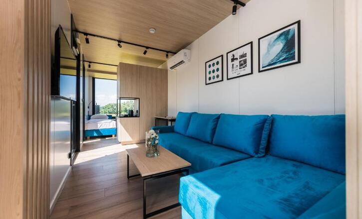 As the largest of all our Cargo Marine rooms, this cherished retreat is thoughtfully curated for up to six guests who value profound comfort and relaxation. The space features two spacious bedrooms, each offering either a double bed or two single beds, along with a roomy wardrobe.