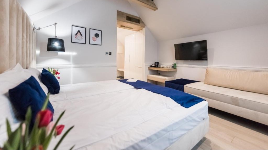 Our 24-square-meter apartment is a cherished retreat thoughtfully curated to help you unwind and feel at ease. Enveloped in warmth and comfort, the space features a restorative queensize bed alongside carefully considered amenities, including air conditioning, a flat-screen TV, a safe, and a refrigerator.