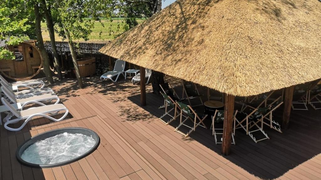 Soaking in the warm, bubbling waters is a truly restorative experience. Our inviting jacuzzis offer exceptional comfort, (one at 35°C and one at 39°C) providing a cherished retreat where several guests can easily unwind together.
