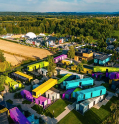Przybywając do Zatora możecie zamieszkać w niezwykłych budynkach, jakich do tej pory niewiele znajdziecie w Polsce. Chociaż trzeba przyznać, że naśladowcy już się zdarzają. Scandinavia Marine jako pierwsza w Polsce zaproponowała swoim gościom noclegi w kontenerach. Pomysł nadania drugiego życia kontenerom morskim pozwolił na połączenie ekologii z niebanalnym wyglądem i wielką wygodą dla wszystkich gości. Nie trzeba było do ich budowy ścinać drzew w lesie. Kontenery mają różne kolory, pozornie chaotycznie poustawiane mają przemyślany układ, zapewniający gościom maksimum komfortu. W takich domkach można dokonać rezerwacji dla dwóch, czterech, a nawet sześciu osób. Najmniejsze mają powierzchnię 11 metrów kwadratowych, a największe 32 metry kwadratowe. W każdym z nich w sypialni znajduje się wygodne łoże małżeńskie, duża szafa na ubrania i 43-calowy telewizor z funkcją smart, no i oczywiście wi-fi. Dziecko młodsze niż 2 lata, które będzie spało razem z rodzicami może nocować nieodpłatnie. W łazience znajdziecie do swojej dyspozycji suszarkę do włosów, zestaw kosmetyków, ręczniki.