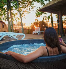 Wodne rytuały działają odprężająco, poprawiają kondycję organizmu i samopoczucie. Do dyspozycji Gości oddajemy sześcioosobową saunę suchą (o maksymalnej temperaturze 110ºC) oraz ustawioną tuż obok drewnianą balię z zimną wodą. W strefie SPA znajdują się również dwa komfortowe jacuzzi z podgrzewaną wodą. Miejsce to idealnie sprawdzi się, jeśli pragniesz odprężyć nie tylko ciało, ale także umysł – w szczególności po dniu pełnym bodźców, np. po pobycie w parku rozrywki Energylandia, znajdującym się tuż obok naszego resortu.
